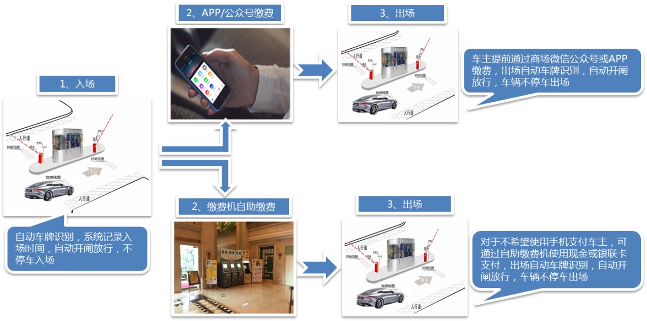 1)智能識別不停車進出場