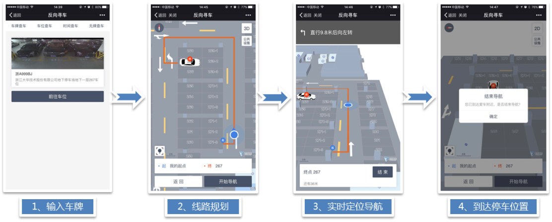 可視化反向?qū)ぼ?,支持按車牌號、進場時間段、無牌車、車位號快速尋車,節(jié)約車主尋車時間;iBeacon(藍牙)定位系統(tǒng),實現(xiàn)實時定位導航尋車,尋車體驗更佳。
